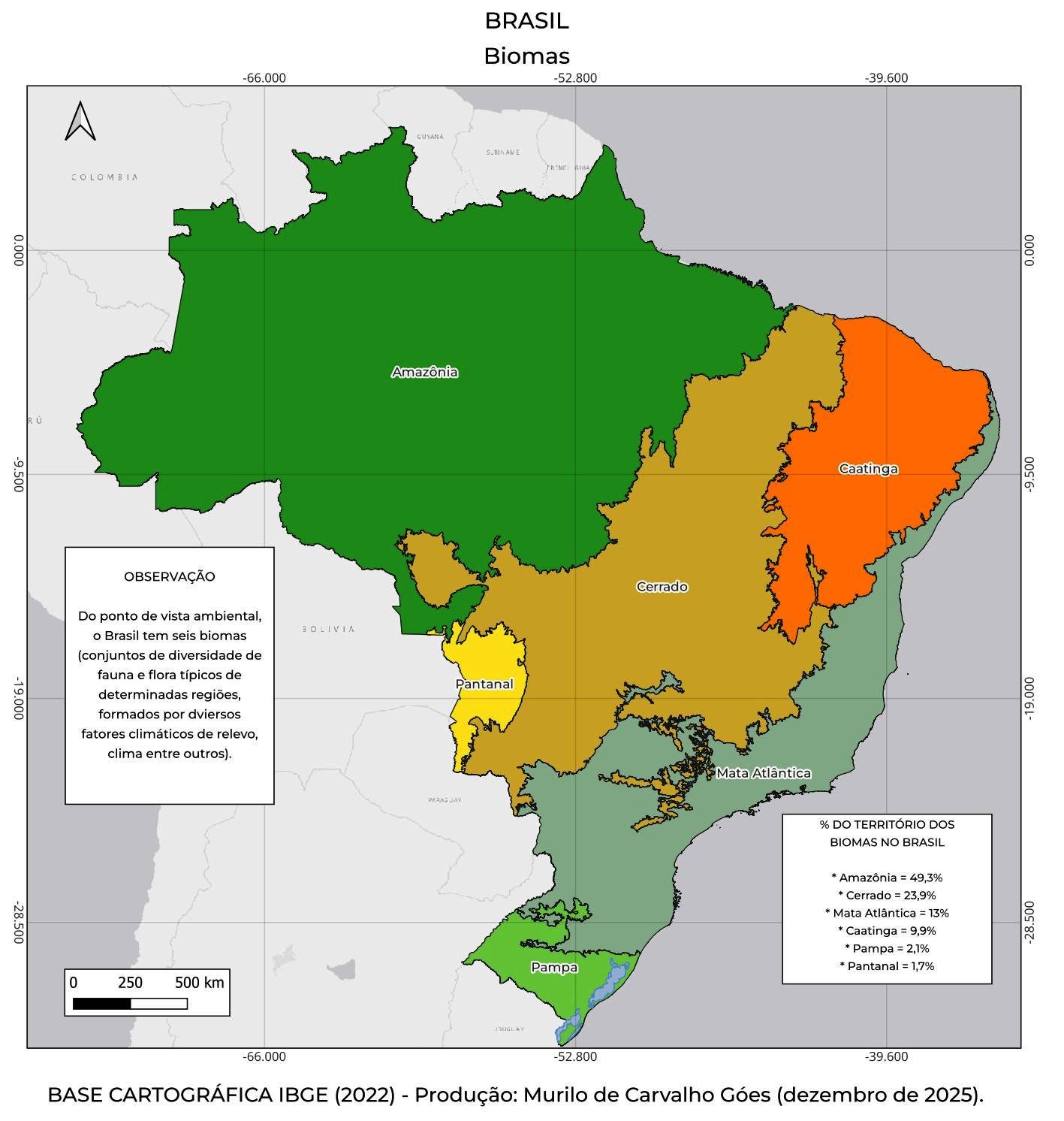 A palavra “bioma” é conceituada como o conjunto dos seres vivos (fauna e flora) de uma determinada área, influenciada também pelas condições climáticas. Apresentamos, a seguir, um resumo dos principais biomas brasileiros.