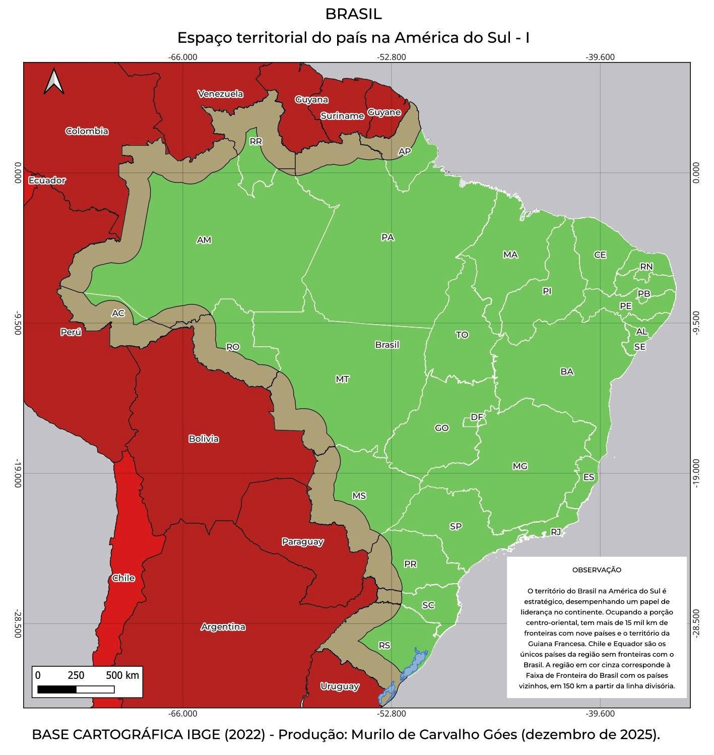 No Mapa I, a faixa de cor cinza mostra a Faixa de Fronteira (150 km a partir da linha divisória das fronteiras) com os dez países aos quais o Brasil tem fronteiras (só não fazem fronteiras com o Brasil o Chile e o Equador).