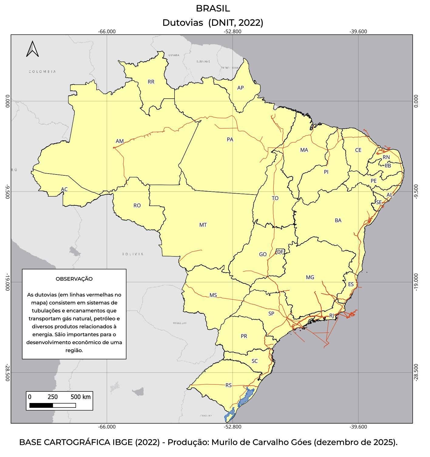 Sistema de transporte de produtos como gás natural e petróleo, que percorre grandes distâncias, boa parte deles partindo das bacias petrolíferas e da costa brasileira ou vindo de países, como a Bolívia, fornecedora de gás natural. No Rio Grande do Sul, por exemplo, a região de Tramandaí/Imbé apresenta uma dutovia, conectando o transporte de produtos até a Refinaria Alberto Pasqualini (REFAP), em Canoas. Fazem parte de uma infraestrutura econômica crescente, gerando energia e desenvolvimento para regiões metropolitanas e industriais.